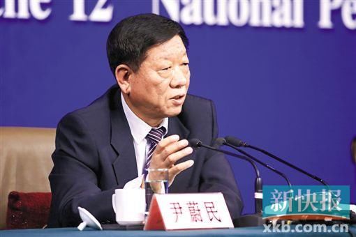 ■人社部部长尹蔚民在回答记者的提问。新快报记者宁彪/摄