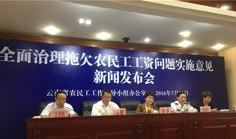 新华网昆明7月29日电(徐琪燕)29日,云南省人社厅、住建厅等单位联合召开新闻发布会通报,针对拖欠农民工工资问题,云南已制定《云南省人民政府办公厅关于全面治理拖欠农民工工资问题的实施意见》(以下简称《实施意见》),出台6个方面24条具体措施,保障和维护农民工等劳动者的合法权益。