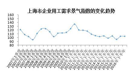 调查数据显示,2016年下半年上海市企业用工需求景气指数为103.4,环比下降0.1点,同比上升7.8点。