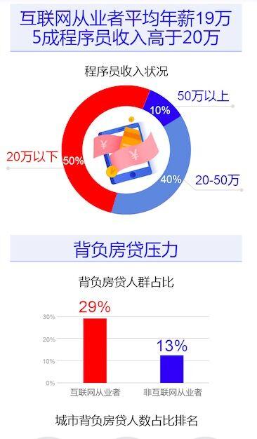 【TechWeb报道】10月23日消息,明天是程序员关爱日,挖财和饿了么今日联合发布《互联网从业者生活品质报告》。据报告统计,互联网从业者平均年薪19万元,其中10%程序员的年收入高于50万,有29%的互联网从业人员正背负房贷,且近四成程序员处于单身状态。