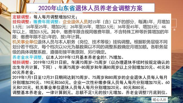 退休以后我们的养老金是年年增长的,养老金增长的时候,还会考虑到缴费年限和养老金水平,一般缴费年限越长,养老金增加的钱数就越多。以山东省2020年养老金调整方案为例: