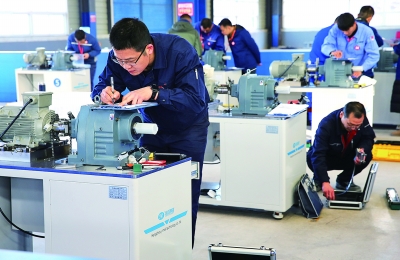 装配钳工轴系对中比赛现场。河北工人报记者郑荣玺 林峰摄