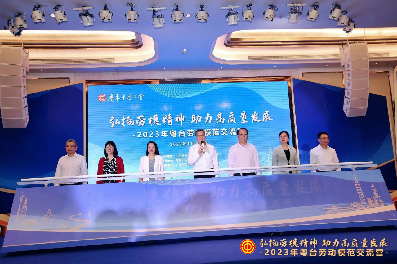 11月7日,由广东省总工会、台湾劳工大联盟总会主办,东莞市总工会承办的2023年粤台劳动模范交流营活动启动仪式在东莞举行。广东省人大常委会党组成员、省总工会主席吕业升出席启动仪式,并宣布交流营活动正式启动。启动仪式上,广东省总工会党组成员、副主席杜玲和台湾劳工大联盟理事长陈瑞分别代表主办方致辞。省台办副主任、广东海峡两岸交流促进会副会长、一级巡视员黄兆芬,东莞市委副书记刘炜应邀出席启动仪式。东莞市人大常委会副主任、市总工会主席罗军文代表承办方致欢迎辞。