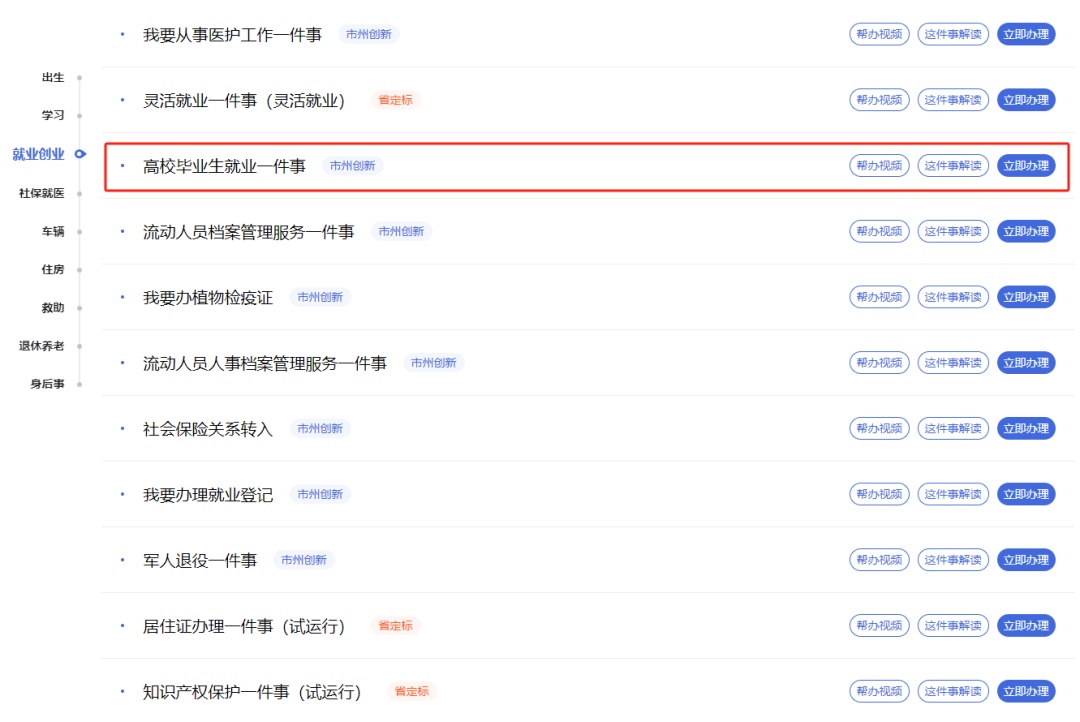 “高校毕业生就业”一件事改革,以高校毕业生就业需求为导向,以一体化政务服务平台为枢纽,选取关联度高、办件量大、涉及部门多的高频政务服务事项,按照系统集成的思路,整合部门资源,推进并联办理,实现多表合一、一表申报。